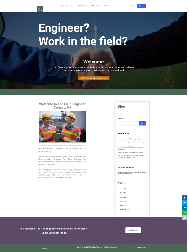 To create and design a social community page for Engineers. The landing page to be design to be made simple with only 2 call to actions and a sign up & login to the community. A hero video with engineers and just a basic about the page info. Also wanted to give an insight to what is going on in the community and added a blog element to the page.